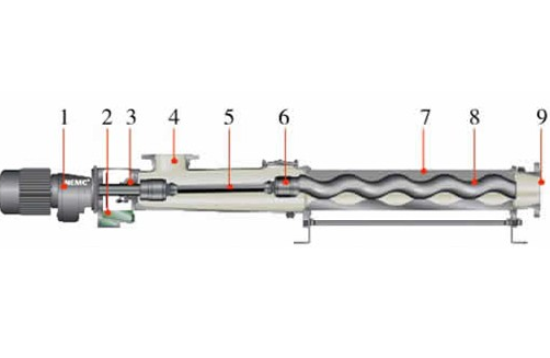 立式单螺杆泵转速和流量是线性关系,泵可定转速而定流量。也可无级调速或多级变速来满足用户各种特性的要求,流量精度(±1%),可作为计量泵用于实验室,配药,配料等。压力(扬程)生成与“定子”螺旋导程(T)有关,一个导程(T)输出压力为0.6 Mpa(60米扬程)压差级,二个导程为二级泵压力为1.2Mpa(12 0米扬程)。根据工况需要任何一种型号都可以制造成,立式,斜置式,可移小车载式等型式的泵。立式单螺杆泵零件少,结构不复杂,所以折卸,维修简单,即使初次使用也可在短期内容易掌握。