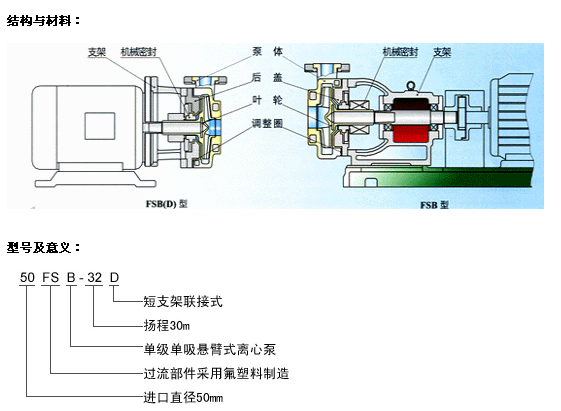 2、泵的设计说明:FSB型和FSB-L型是我公司采用特种泵加工工艺联合精心设计的新型塑料合金耐腐蚀系列产品,该产品具有设计合理、结构紧凑、性能可靠、使用维修方便、节约能源等优点。