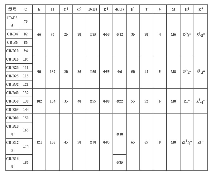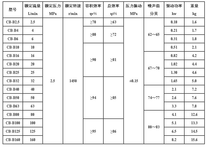 CB-B型齿轮油泵是一种无侧板、三片式结构的低压齿轮油泵。它没有径向力平衡结构和轴向间隙补偿装置,依靠间隙密封原理工作。该产品结构简单,维护方便,价格低廉。