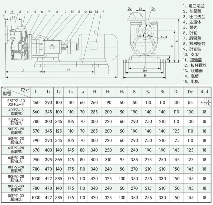 FPZ自吸泵,采用增强聚丙烯(CFR-PP)一次注塑成型。机械强度高,耐腐蚀性能强,自吸泵结构上有独具一格的科学性,泵腔内设有吸液室、储液室、回液止回阀、气掖分离室、回流孔。只需在第一次开机前灌注引液,以后不必重复灌注引液,在吸送介质时,流体可时断时续,断液12分钟内来液可继续吸送,机械密封不需另加冷却水冷却,操作简便、安全无泄漏,是取代液下泵的最佳产品。(CFR-PP材质:无毒、无污染,耐一般酸碱盐类,工作温度-14℃~40℃)