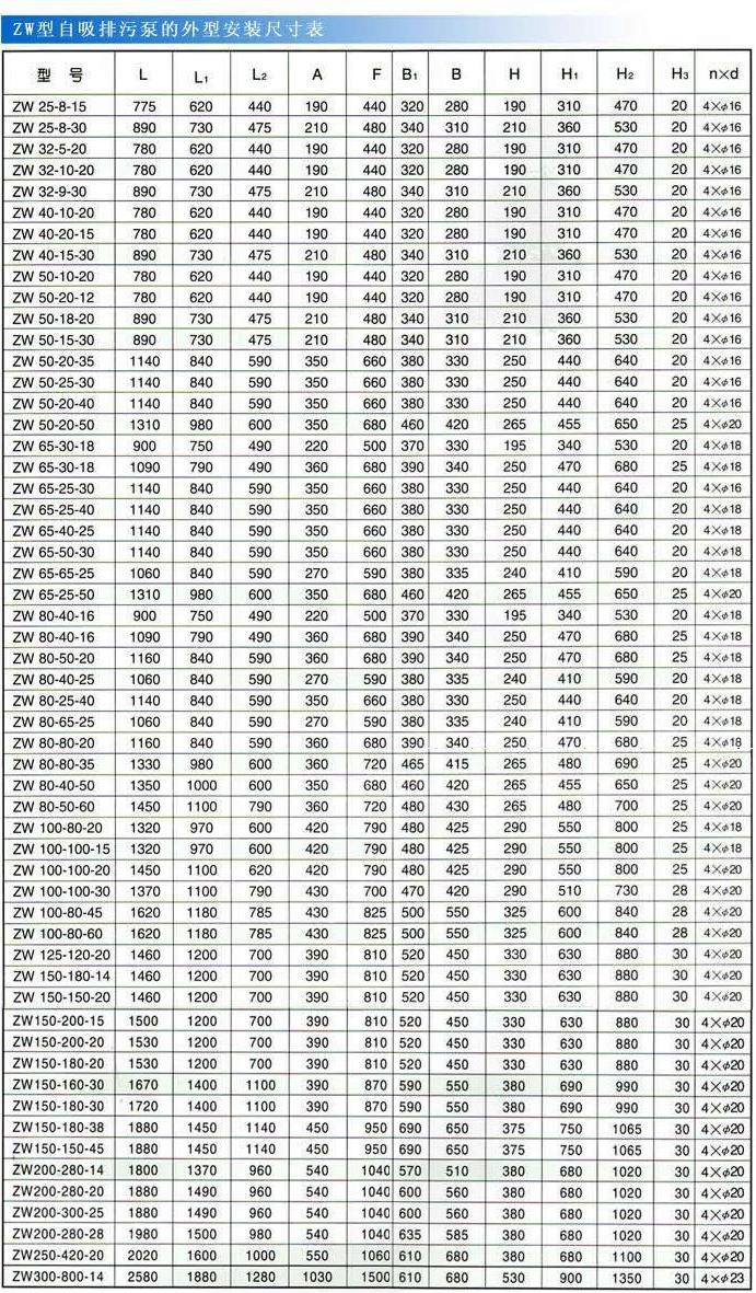 ZW型自吸式无堵塞排污泵,是本司根据ZX型自吸离心泵及QW型潜水排污泵的结构及性能,借鉴国外同类产品之优点,研制而成的集自吸及排污于一身的新型泵种。既可象一般清水自吸泵那样不需安装底阀,不需灌引水,又可抽吸含有大颗粒固体直径为出口口径的60%和纤维长度为叶轮直径1.5倍的污物、沉淀物、废矿杂质、粪便处理及一切工程污水物和胶质液体,完全减轻人力的劳动强度,而且安装使用方便,极少维修,性能达到国际先进水平,具有广阔的应用市场和发展前景